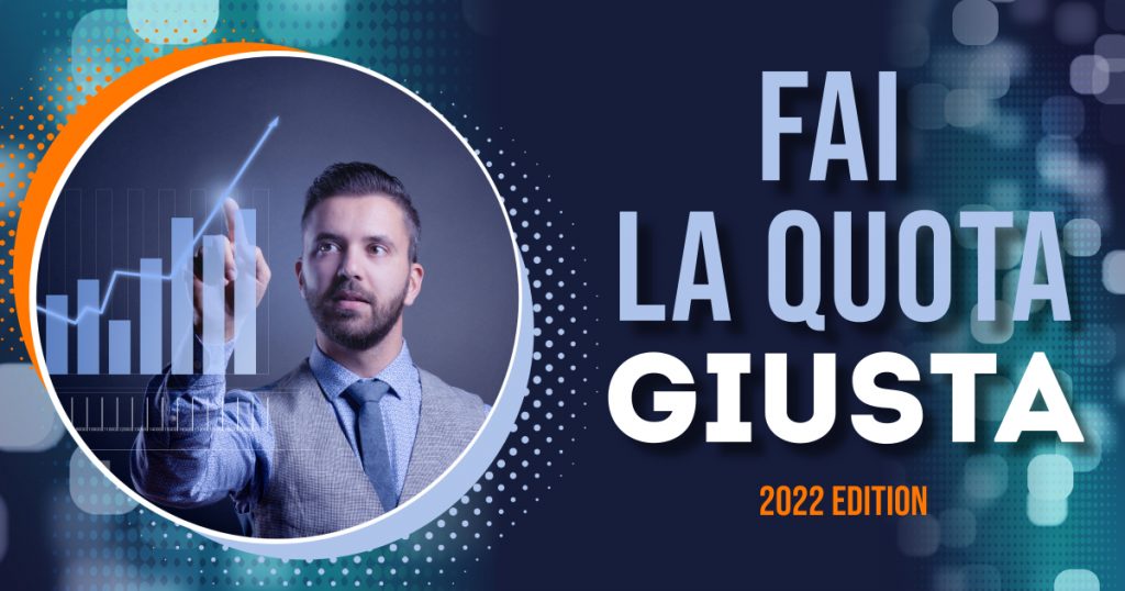 Durante il Seminario otterrai il manuale “Fai la Quota Giusta 2022” per tenere sotto controllo la situazione durante l’anno e sviluppare costantemente le tue capacità di produrre risultati